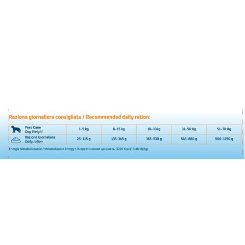 Kŕmny návod: Možno podávať suché, alebo navlhčené vodou alebo vývarom. Odporúča sa pri prechode z iného krmiva dávky pridávať postupne. Pes musí mať vždy k dispozícii misku s čerstvou vodou.