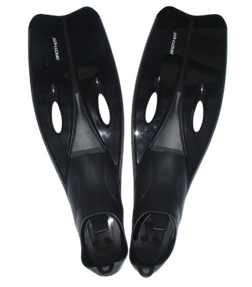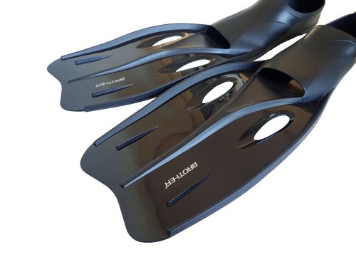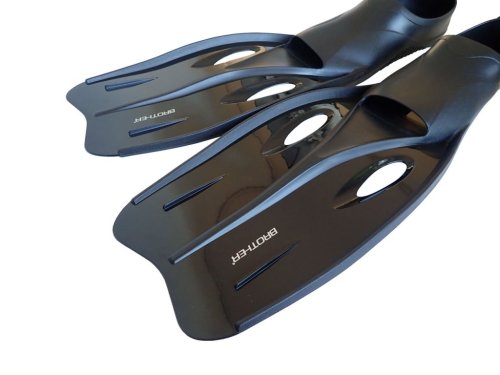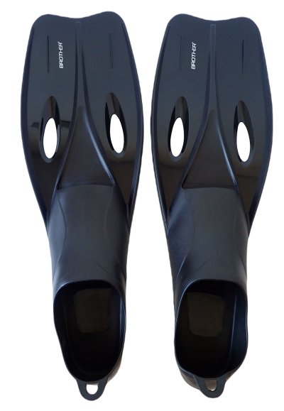 Plutvy BROTHER, gumová topánočka, PE sáčok. Plutvy Brother vo veľkosti 44-46, vo farbe čiernej. Plutvy majú gumové pružné výstuhy pre lepšie prúdenie vody.