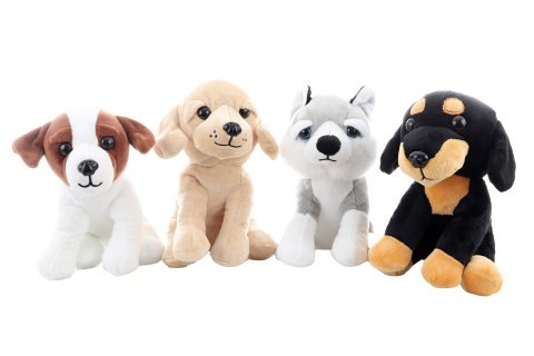 Plyšový pes sediaci s rozmermi cca 18x12x13 cm. 4 druhy - dodávame podľa skladovej dostupnosti. Vek 0+