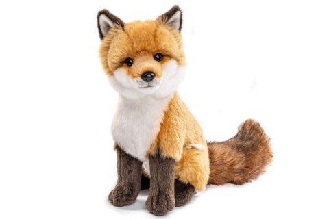Plyšová líška sediaca s rozmermi 27x17x12 cm (plus chvost 14 cm). Vek 0+