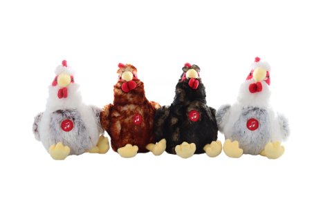 Plyš sliepky/kohút zvukovej o veľkosti cca 22 cm. Po stlačení vydáva zvuk. Prevádzka na 3 gombíkové batérie umiestnené vo vnútri plyš e. Vek 0+
