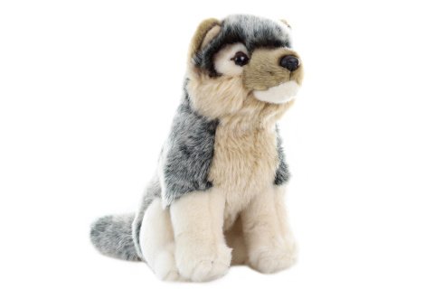 Plyšový vlk sediaci o veľkosti cca 20 x 24 x 11 cm (bez chvosta). Dĺžka chvosta cca 9 cm. Vek 0+