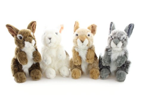 Plyšový sediaci zajačik o veľkosti cca 20 x 11 x 10 cm. Vek 0+
