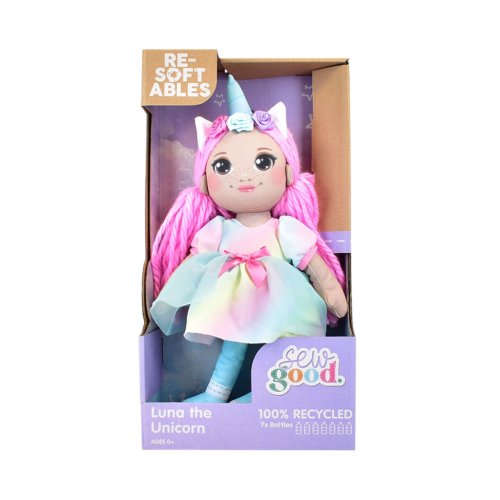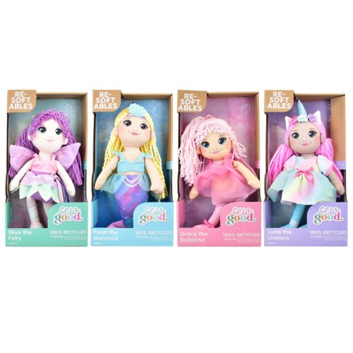 Bábiky sú super mäkké, mačkacie a majú šité (alebo tlačené) rysy tváre pre bezpečnosť (vhodné pre najmenších). Veľkosť bábiky cca 30 cm. Každá bábika je vyrobená z recyklovaného polyesteru, čím je ekologická. Pričom každá bábika vzniká recykláciou približne siedmich plastových fliaš. Štyri rôzne druhy - Luna (jednorožec), Pearl (morská panna), Skye (víla) a Grace (baletka).