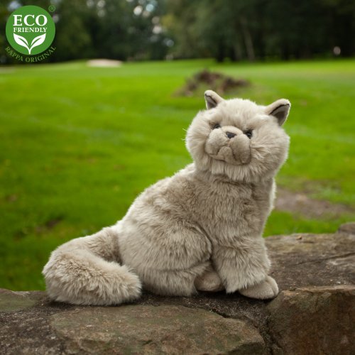 Plyšová mačka o veľkosti 35 cm je ručne ušitá z vysoko kvalitnej, jemnej plyšu, a vďaka tomu vyzerá ako živá. Je súčasťou exkluzívnej kolekcie plyšových hračiek RAPPA. Rozhodli sme sa ísť zelenou cestou čo najmenej zaťažujúce životné prostredie – cestou ECO-FRIENDLY. Čo to vlastne ECO-FRIENDLY znamená? Výplň plyšovej hračky je vyrobená z recyklovaných PET fliaš. Tento materiál je úplne bezpečný, na omak nerozoznateľný od štandardnej výplne a plne atestovaný pre bezpečnosť aj tých najmenších.
