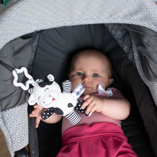 Krásna farebná hračka pre bábätká v tvare zvieratka. Zvieratko hrká a je vyrobené v pestrých farbách. Tvary a farby hračky lákajú pozornosť dieťaťa, učia ho, bavia a rozvíjajú tak detskú fantáziu. Vďaka veselým farebným prevedeniam bude Vaše dieťa objavovať svet farieb, tvarov a zvukov. Hračka je vyrobená z kvalitného a príjemného materiálu. Výška cca 22 cm. Vhodné pre deti od narodenia.