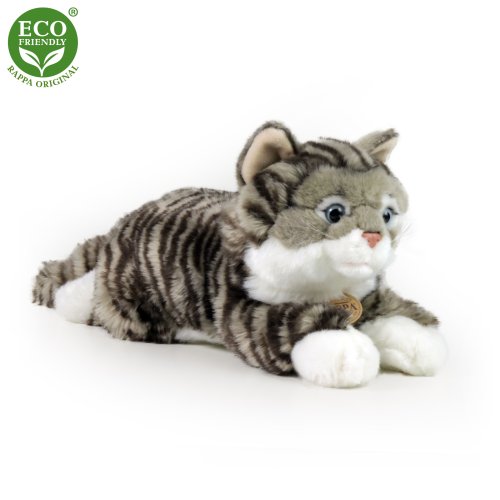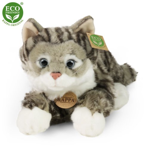 Nádherná plyšová mačka o veľkosti 40 cm. Mačka je vyrobená z vysoko kvalitného plyšu a je tak súčasťou exkluzívnej kolekcie plyšových hračiek RAPPA. Hlavné vlastnosti: realistické zvieratkokoručné spracovanie vysoko kvalitný plyš ECO-FRIENDLY výplň Čo to vlastne ECO-FRIENDLY znamená? Výplň plyšovej hračky je vyrobená z recyklovaných PET fliaš. Tento materiál je úplne bezpečný, na omak nerozoznateľný od štandardnej výplne a plne atestovaný pre bezpečnosť aj tých najmenších. Rozhodli sme sa ísť zelenou cestou čo najmenej zaťažujúcou životné prostredie – cestou ECO-FRIENDLY.