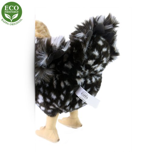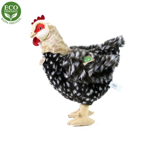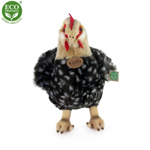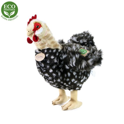 Plyšová kropenatá sliepka o veľkosti 33 cm je vyrobená z vysoko kvalitného plyšu a je tak súčasťou exkluzívnej kolekcie plyšových hračiek RAPPA. Súčasťou je látkové vajíčko, ktoré je prichytené k sliepočke pomocou šnúrky. Hračka je ECO-FRIENDLY. Výplň plyšovej hračky je vyrobená z recyklovaných PET fliaš. Tento materiál je úplne bezpečný, na dotyk nerozoznateľný od štandardnej výplne a plne atestovaný pre bezpečnosť aj tých najmenších detí. Rozhodli sme sa ísť zelenou cestou čo najmenej zaťažujúcou životné prostredie – cestou ECO-FRIENDLY. Rozmery hračky: 33 x 21 x 33 cm. Vek: 0+