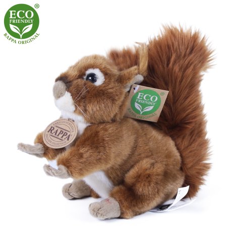 Krásna plyšová veverička nesmie chýbať v žiadnej detskej izbičke. Veverička o veľkosti 17 cm je vyrobená z veľmi kvalitného plyšu a je súčasťou exkluzívnej kolekcie plyšových hračiek RAPPA. Hračka je ECO-FRIENDLY. Výplň plyšovej hračky je vyrobená z recyklovaných PET fliaš. Tento materiál je úplne bezpečný, na dotyk nerozoznateľný od štandardnej výplne a plne atestovaný pre bezpečnosť aj tých najmenších detí. Rozhodli sme sa ísť zelenou cestou čo najmenej zaťažujúcou životné prostredie – cestou ECO-FRIENDLY. Rozmery hračky: 17 x 10 x 18 cm. Vek: 0+