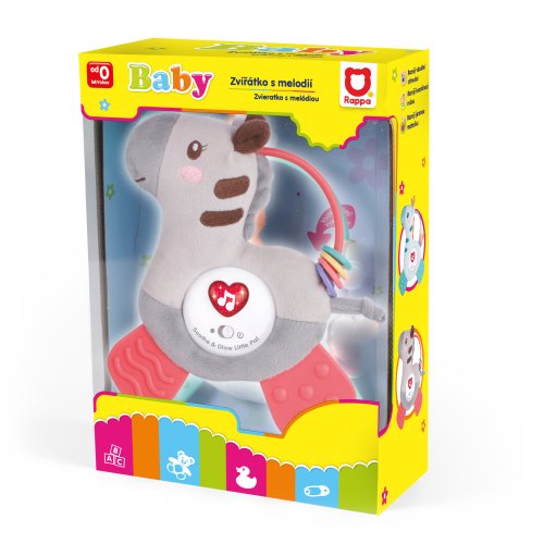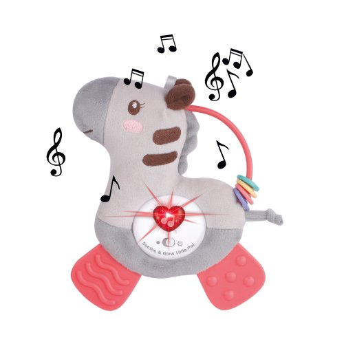 Veselé plyšové hryzátko - zebra pre naše najmenšie deti. Pri stlačení farebne bliká a vydáva zvuky. Hračka rozvíja zmyslové vnímanie dieťaťa a podnecuje jeho fantáziu. Hračka funguje na 3 batérie typu AG13, ktoré sú súčasťou výrobku. Priložený aj praktický klip na uchytenie do kočíka.