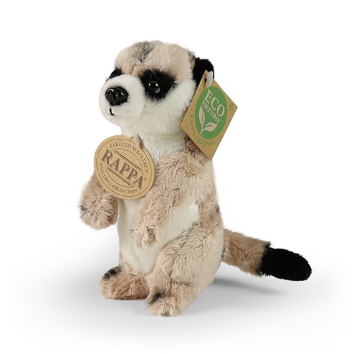 Plyšová surikata meria 14 cm a vďaka tým najkvalitnejším materiálom sa radí do Exkluzívnej kolekcie plyšových hračiek značky Rappa.