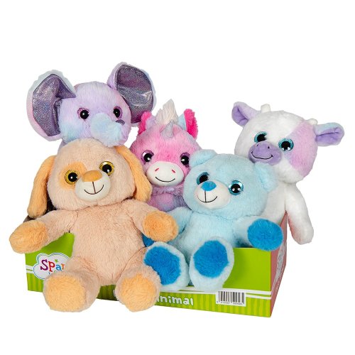 Roztomilé plyšové zvieratká s trblietavými očami – v šiestich variantoch – psík, slon, medveď, jednorožec, kravička a mačička. Vyrobené z jemného a kvalitného plyšu. Velisot zvieratka 23 cm.