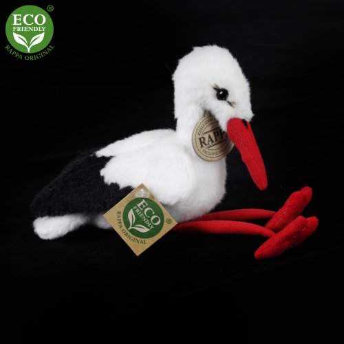 Krásny plyšový bocian vo veľkosti 14 cm je vyrobený z vysoko kvalitnej plyšu, ručne šitý a je tak súčasťou exkluzívnej kolekcie plyšových hračiek RAPPA.