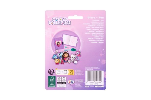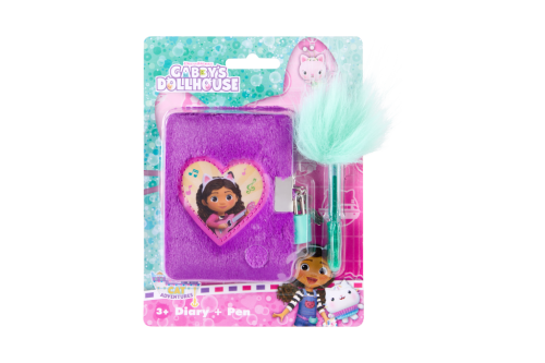 Kúzelný denník s motívom obľúbeného seriálu Gábinkin kúzelný domček. Denník má mäkké plyšové dosky, ktoré pôsobia príjemne na dotyk, a je uzatvárateľný na malý ozdobný zámok s klíčkami, takže všetky tajné zápisky zostanú v bezpečí. Súčasťou je aj štýlové chlpaté pero, vďaka ktorému je písanie ešte zábavnejšie.