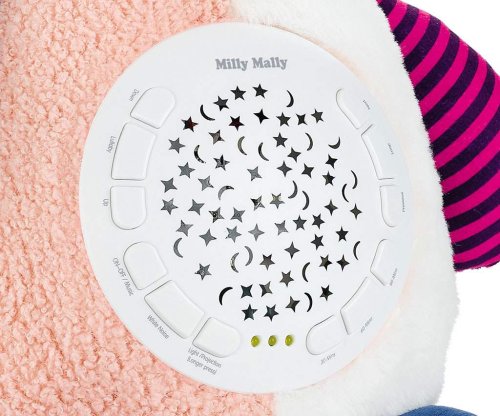 Môžete nastaviť vhodnú dobu trvania: 30, 60, 90 minút. K dispozícii je 5 úrovní hlasitosti. Skvelým doplnkom jeho funkcie je 5 druhov bieleho šumu, ktorý má na batoľa obzvlášť upokojujúci účinok umožňujúci mu upokojiť sa a rýchlejšie zaspať. S touto hračkou budete počuť jemné zvuky: zurčenie vody so zvukmi vtákov, tlkot srdca, kvapkanie vody, spev vtákov alebo padajúci dážď.