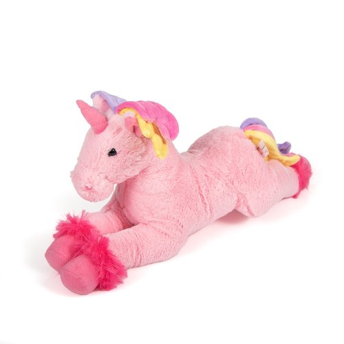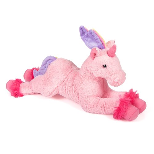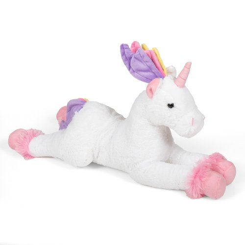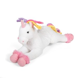 Plyšový jednorožec 43 cm – v ružovej a bielej farbe s dúhovou hrivou a chvostom. Vyrobené z jemného plyšu. Veľkosť 43 cm.