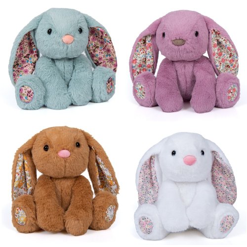 Plyšový králik s látkovými ušami 25 cm - štyri farby biela, ružová, hnedá a modrá.