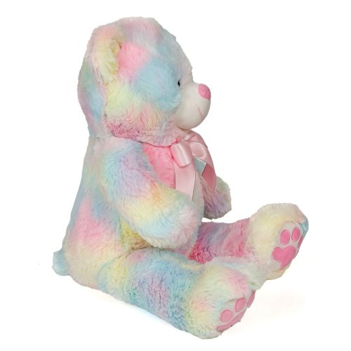 Roztomilý plyšový medvedík v dúhových farbách, vyrobený z mimoriadne hebkého a mäkkého materiálu. Vďaka svojej veľkosti 60 cm je ideálny na maznanie, ako dekorácia do detskej izby.