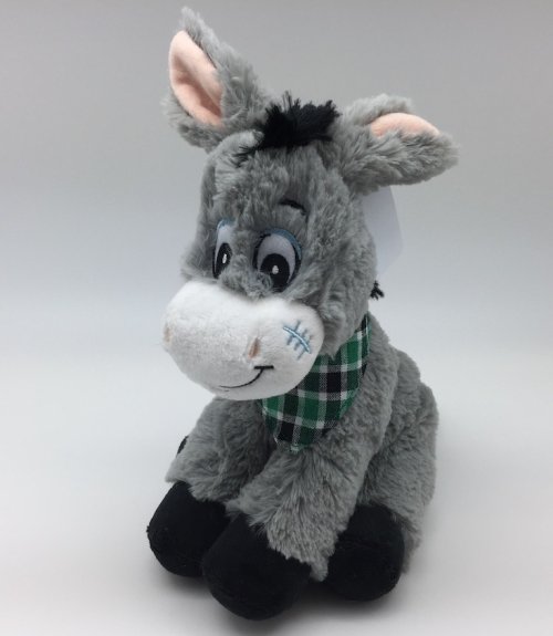 Plyšový oslík sediaci so šatkou - veľkosť 25 cm. Vyrobené z kvalitnej plyšu.