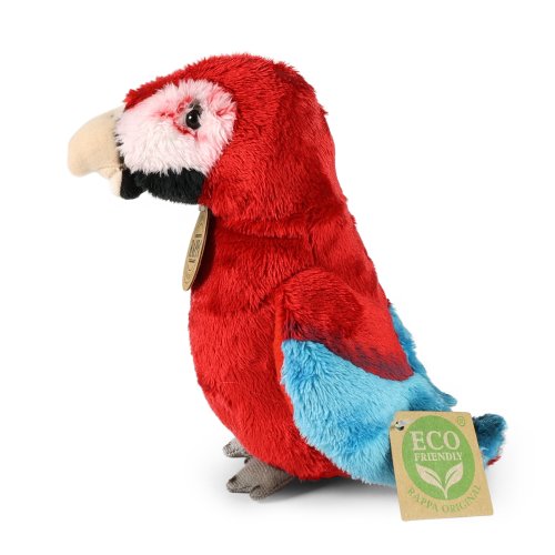 Plyšový papagáj meria 15 cm a vďaka tým najkvalitnejším materiálom sa radí do Exkluzívnej kolekcie plyšových hračiek značky Rappa.