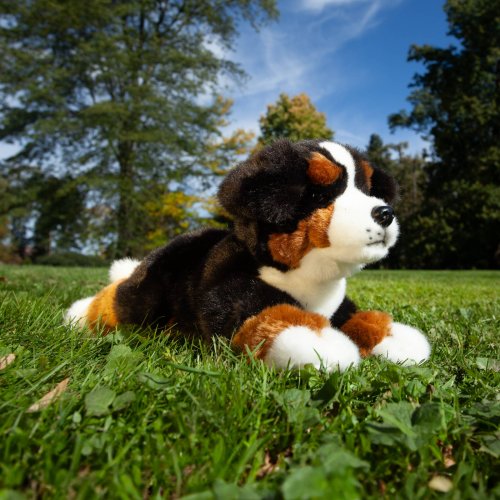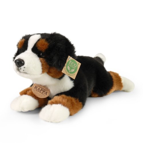 Plyšový pes rasy bernský salašnícky meria 32 cm a vďaka tým najkvalitnejším materiálom sa radí do Exkluzívnej kolekcie plyšových hračiek značky Rappa.
