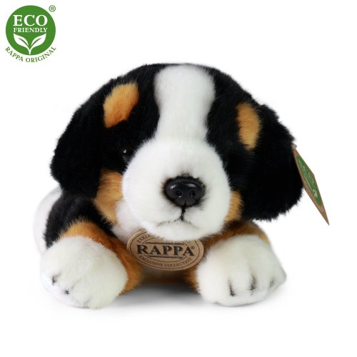 Plyšový bernský salašnícky pes ležiaci o veľkosti 20 cm je ručne ušitý z vysoko kvalitného jemného plyšu, a vďaka tomu vyzerá ako živý. Tento plyšový kúsok je ideálnym darčekom pre všetkých milovníkov hebučkých plyšákov. Je súčasťou exkluzívnej kolekcie plyšových hračiek značky RAPPA. Hlavné vlastnosti: realistické zvieratkokoručné spracovanie vysoko kvalitný plyš ECO-FRIENDLY výplň Čo to vlastne ECO-FRIENDLY znamená? Výplň plyšovej hračky je vyrobená z recyklovaných PET fliaš. Tento materiál je úplne bezpečný, na omak nerozoznateľný od štandardnej výplne a plne atestovaný pre bezpečnosť aj tých najmenších. Rozhodli sme sa ísť zelenou cestou čo najmenej zaťažujúcou životné prostredie – cestou ECO-FRIENDLY.