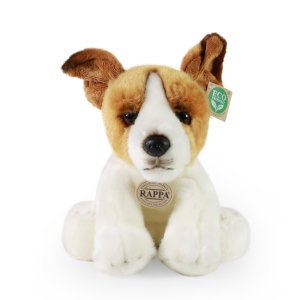Plyšový pes rasy jack russell teriér meria 30 cm a vďaka tým najkvalitnejším materiálom sa radí do Exkluzívnej kolekcie plyšových hračiek značky Rappa.