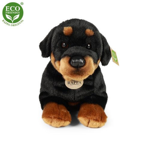 Roztomilý plyšový pes rotvajler vo veľkosti 44 cm môže byť ideálnym darčekom pre každého, kto má rád zvieratá alebo miluje prírodu. Je vyrobený z mäkkého a jemného materiálu, ktorý je príjemný na dotyk a je tak súčasťou exkluzívnej kolekcie plyšových hračiek RAPPA. Čo to vlastne ECO-FRIENDLY znamená? Výplň plyšovej hračky je vyrobená z recyklovaných PET fliaš. Tento materiál je úplne bezpečný, na omak nerozoznateľný od štandardnej výplne a plne atestovaný pre bezpečnosť aj tých najmenších. Rozhodli sme sa ísť zelenou cestou čo najmenej zaťažujúcou životné prostredie- cestou ECO-FRIENDLY.