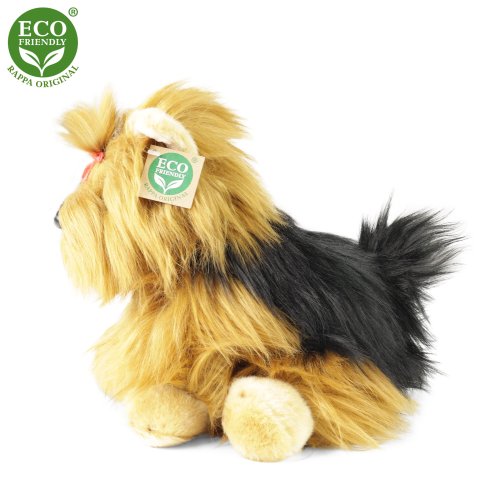 Rozkošný plyšový psík nesmie chýbať v žiadnej detskej izbičke! Sediaci yorkshire je vyrobený z exkluzívneho, veľmi kvalitného plyšu a jeho veľkosť je cca 27 cm. Tento senzačný plyšový kúsok je ideálny aj ako darček. Hlavné vlastnosti: realistické zvieratkokoručné spracovanievysoko kvalitný plyšECO-FRIENDLY výplň Čo to vlastne ECO-FRIENDLY znamená? Výplň plyšovej hračky je vyrobená z recyklovaných PET fliaš. Tento materiál je úplne bezpečný, na omak nerozoznateľný od štandardnej výplne a plne atestovaný pre bezpečnosť aj tých najmenších. Rozhodli sme sa ísť zelenou cestou čo najmenej zaťažujúcou životné prostredie – cestou ECO-FRIENDLY.