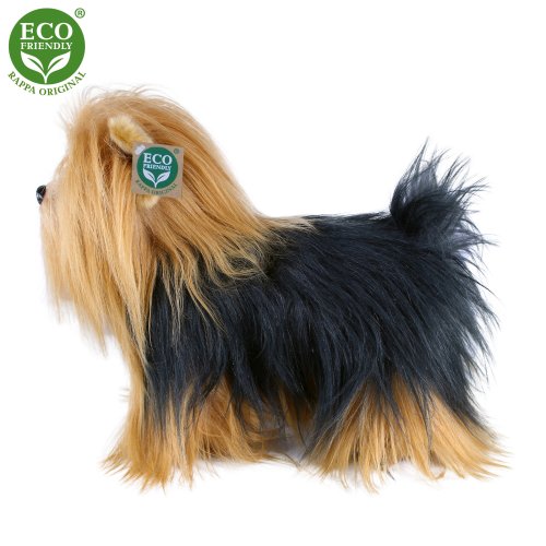 Roztomilý plyšový yorkšír vo veľkosti 30 cm je vyrobený z exkluzívnej, veľmi kvalitnej plyšu. Tento plyšový kúsok je súčasťou exkluzívnej kolekcie plyšových hračiek RAPPA. Čo to vlastne ECO-FRIENDLY znamená? Výplň plyšovej hračky je vyrobená z recyklovaných PET fliaš. Tento materiál je úplne bezpečný, na omak nerozoznateľný od štandardnej výplne a plne atestovaný pre bezpečnosť aj tých najmenších. Rozhodli sme sa ísť zelenou cestou čo najmenej zaťažujúcou životné prostredie- cestou ECO-FRIENDLY.