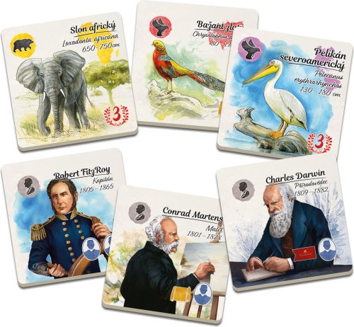 Pripojte sa na dobrodružnú plavbu okolo sveta k Charlesovi Darwinovi a spoločne dokončite slávnu knihu O pôvode druhov. Študujte zvieratá, objavujte nové svety, publikujte svoje poznatky a rozvíjajte teórie. Nádherné ilustrácie dopĺňajú bohato vybavenú hru určenú pre 2-5 hráčov. Vek 8+