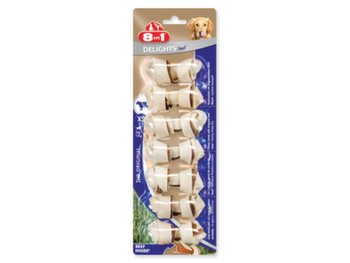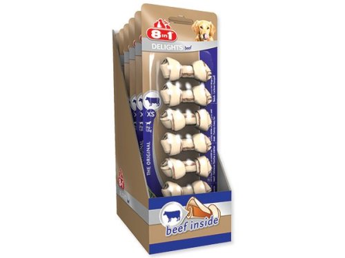Žuvacie kosti so sušeným hovädzím mäsom vo vnútri, doplnkové krmivo pre dospelé psy od 2 do 12 kg hmotnosti.