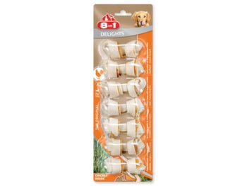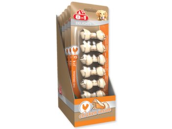 Žuvacie kosti so sušeným kuracím mäsom vo vnútri, doplnkové krmivo pre dospelé psy od 2 do 12 kg hmotnosti.