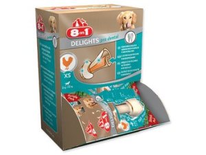 Žuvacie kosti s mineráliami a so sušeným kuracím mäsom vo vnútri, doplnkové krmivo pre dospelé psy od 2 do 12 kg.
