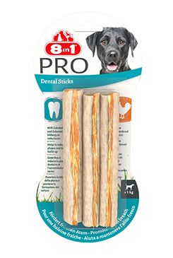 Žuvacie tyčinky 8in1 Delights Dental sú vyrobené z kuracieho mäsa, ktoré je obohatené o špeciálnu formulu proti zubnému povlaku. Chutnú prémiovú maškrtu si zamiluje každý štvornohý kamarát. Maškrty pre psov Delights obsahujú iba 2% tuku, neobsahujú umelé farbivá a dochucovadlá. Pravidelné žuvanie eliminuje tvorbu zubného povlaku a kameňa.