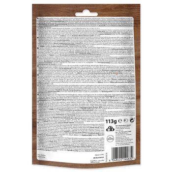 Kŕmny návod: množstvo maškrty upravte s ohľadom na fyzickú aktivitu a pravidelný príjem potravy. Vždy zaistite dostatok čerstvej vody.
