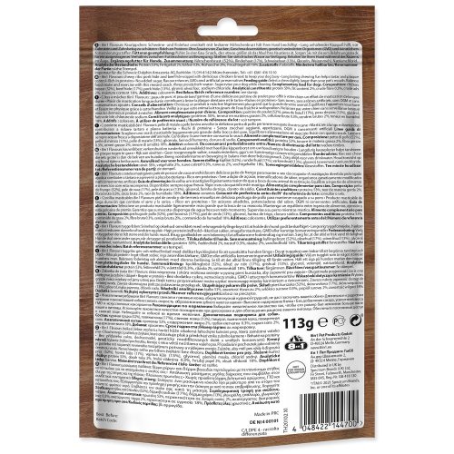 Kuracie prsia (52%), hovädzia koža (17%), bravčová koža (13%), glycerol, pšeničná múka, chlorid sodný.