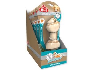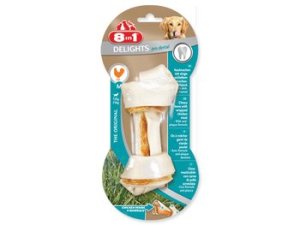 Žuvacia kosť s mineráliami a so sušeným kuracím mäsom vo vnútri, doplnkové krmivo pre dospelé psy od 12 do 35 kg hmotnosti.