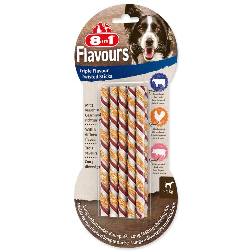 Zloženie: mäso a vedľajšie produkty živočíšneho pôvodu (58% hovädzia koža, 23% bravčová koža, 9% kuracie prsia), vedľajšie produkty rastlinného pôvodu, minerálne látky.