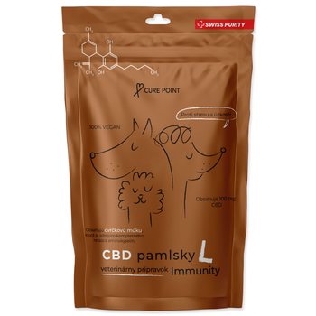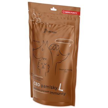 Veterinárne a 100% vegánske CBD maškrty vyvinuté na podporu imunity a vitality psov veľkých plemien (nad 35 kg), ktoré majú celý rad benefitov a vitamínov. Je vhodné ich podávať v stresových situáciách ako je napr. návšteva veterinára, oslavy Nového roka alebo v prípade odlúčenia od majiteľa na dlhšiu dobu.