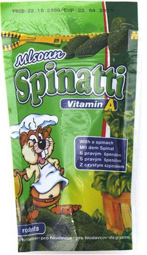 Doplnkové krmivo pre hlodavce . Pochúťka pre hlodavce, dropsy so špenátovou náplňou a lecitínom Zloženie: obilniny, cukry, tuky a oleje, sušená srvátka, sušené mlieko, sušený špenát, lecitín E 322, aroma, minerály, farb u1:p> u2:p </u2:p> Analytické zložky: Tuk 26,0%, N-látky 6,5%, vlhkosť 7%, popol 3,0%, vláknina 2,7 u1:p </u1 :p> u2:p </u2:p> Dávkovanie: slúži ako pochúťka