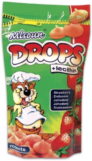 Jahodové cukríky pre hlodavce, doplnkové krmivo.