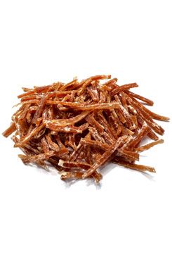 Zloženie: Kačacie prsia (72%), hovädzia koža (8%), treska (5%), sójový proteín, pšeničná múka, škrob.
