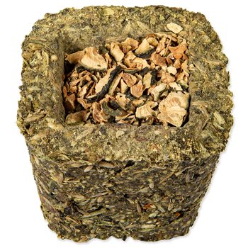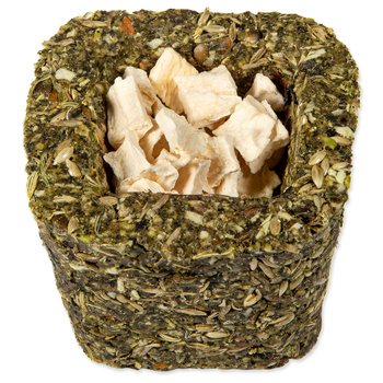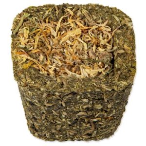 Zloženie: hrach, škrob, semená tráv, semená kanárskych tráv, sušené žihľavy 4,8 %, pohánka, sušená petržlen 1,8 %, sušená mrkva 1,7 % Náplň (sušená mrkva 0,4 %/ sušený pastinák 0,4 %/ sušená cuketa 0,3 %/ sušené kvety nechtíka lekárskeho 0,3 %/ sušené kvety nevädze 0,3 %), konopné semeno, ľanové semeno, semená feniklu, sušená mäta pieporná 1,2 %, sušená púpava 1 %, semená čiernej rasce.