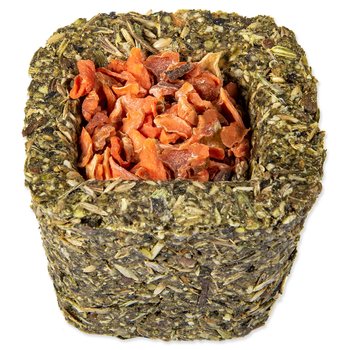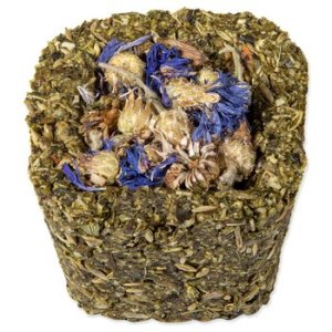 Bezobilné doplnkové krmivo pre králiky a hlodavce. Košíčky plnené sušenou zeleninou alebo okvetnými lístkami. K výberu sú 3 druhy sušenej zeleniny (mrkva, paštrnák, cuketa) a 3 druhy kvetov (okvetné lístky z ruže, kvety nevädze a kvety z nechtíka lekárskeho). Vďaka svojmu bezobilnému zloženiu a pridaným bylinkám sa budú vaši miláčikovia na tieto košíčky vždy tešiť a zakaždým ich môžete prekvapiť inou náplňou košíčka.