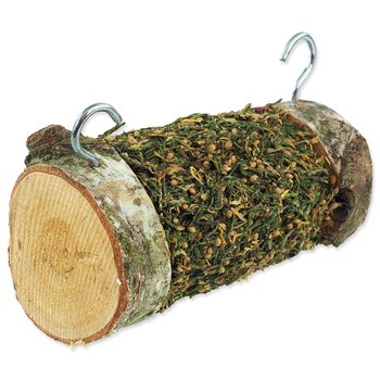 Doplnkové krmivo pre králiky a hlodavce. Valec z dreva listnatých stromov je naplnený chutnou zmesou s petržlenom, okvetnými lístkami ruže a nechtíkom lekárskym. Váš maznáčik sa pri vykusovaní náplne zabaví a zároveň okus dreva pomáha prirodzenej starostlivosti o zuby.
