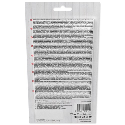 Ontario lízacia pochúťka prichádza v praktickom balení piatich tub po 14g, ktoré udržujú pastu čerstvú a pripravenú na podanie. Môžete ju podávať priamo z tuby, na lízaciu podložku či do iných interaktívnych hračiek alebo ju použiť na zlepšenie chuti suchého krmiva, pokiaľ ho vaša mačka odmieta.