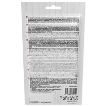 Ontario lízacia pochúťka prichádza v praktickom balení piatich tub po 14g, ktoré udržujú pastu čerstvú a pripravenú na podanie. Môžete ju podávať priamo z tuby, na lízaciu podložku či do iných interaktívnych hračiek alebo ju použiť na zlepšenie chuti suchého krmiva, pokiaľ ho vaša mačka odmieta.