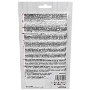 Ontario lízacia pochúťka prichádza v praktickom balení piatich tub po 14g, ktoré udržujú pastu čerstvú a pripravenú na podanie. Môžete ju podávať priamo z tuby, na lízaciu podložku či do iných interaktívnych hračiek alebo ju použiť na zlepšenie chuti suchého krmiva, pokiaľ ho vaša mačka odmieta.