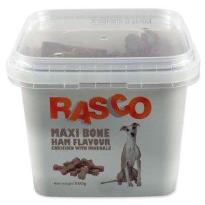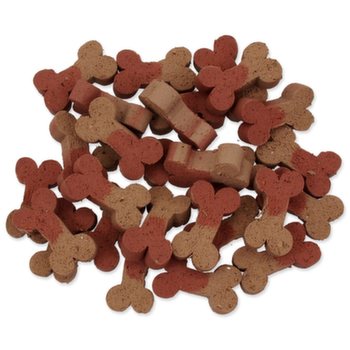 Obilniny, mäso a vedľajšie produkty živočíšneho pôvodu (min. 4 % bravčové), cukry, tuky a oleje, sušená srvátka, vedľajšie produkty rastlinného pôvodu, Aditíva: farbivo, aróma, vápnik 5000 mg/kg (ES prísady). S konzervantmi a antioxidantmi (ES prísady). Návod na kŕmenie: slúži ako pochúťka za odmenu k bežnej dennej kŕmnej dávke. Podávajte 1-2 kusy denne. Vždy zaistite zvieraťu prístup k čerstvej pitnej vode. Skladujte na suchom a chladnom mieste!